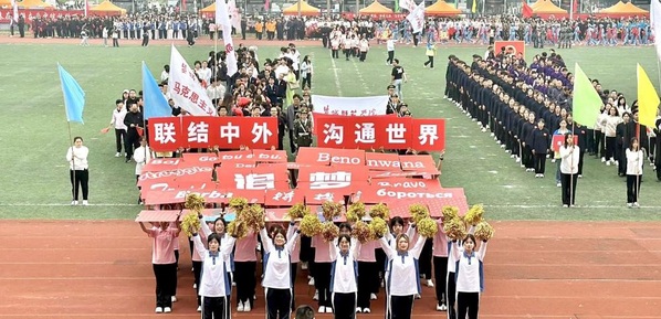 开幕式上,外院表演方阵异彩纷呈,队形变化多样,“连结中外,沟通世界”,“追梦、拼搏”,“Borba”等字样交替出现、身着异国服饰带来了英姿勃发的视觉盛宴、广播操汇演上整齐划一,展现了其在体质教育和美学教育方面的优秀成果,彰显外院学子热情洋溢,活力四射的青春风采。