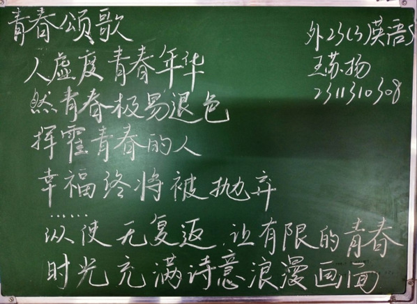 此次活动既为同学们的粉笔字书法提供了展示平台,又促进了同学们黑板字基本功的培养。相信,通过一系列粉笔字活动,越来越多的同学会掌握写好黑板字的正确方法,学校的粉笔字文化氛围也会更加浓厚。