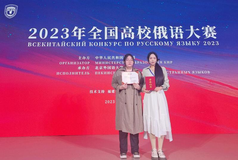 全国高校俄语大赛作为国家级A类比赛,一直受到学校、学院领导的积极支持和俄语系的高度重视。自2023年大赛启动以来,俄语系全体教师在系主任王晓军的带领下积极践行以赛促教理念,全力配合大赛筹备工作。俄语系教师孙瑜作为本次大赛指导教师,赛前对参赛学生进行了细致周到的安排和辅导,并作为带队老师带领选手前往北京参加复赛和决赛。初赛期间王晓军系主任和胡艳丽老师协同指导教师规划布置考场和监考工作,外籍教师费杜洛娃•维多利亚在选手备赛过程中积极提供帮助。俄语系全体师生的共同努力为本次大赛的圆满顺利完成打下了坚实的基础。