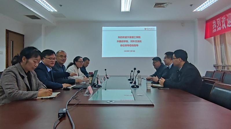 11月15日上午,宁夏理工学院william英国官网院长赫利强、副院长宋刚杰、对外合作交流处处长李刚一行3人来我院调研。william英国官网党委书记张宾州、院长范能维、副院长顾晓波、国际合作交流处处长顾海峰、科长王利清对来访人员表示热烈欢迎。双方在13楼会议室展开了深入交流。