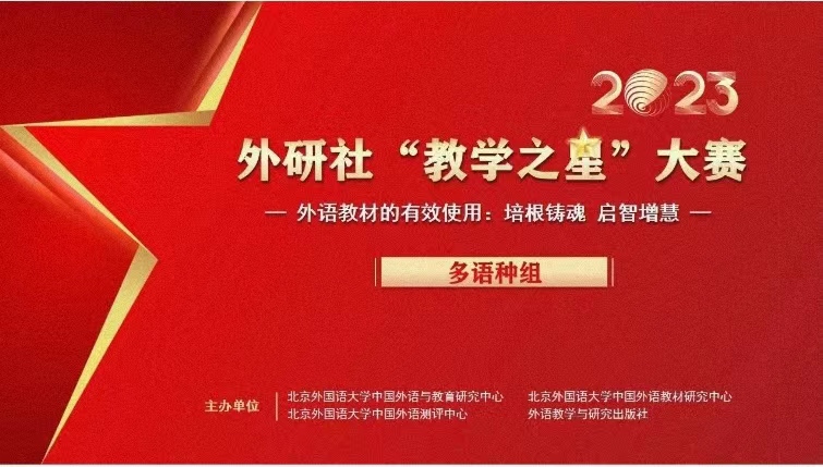 外研社“教学之星”大赛是全国高校外语教育领域最具权威的赛事之一。2023外研社多语种“教学之星”大赛是面向多语种教师开展的一项规模最大、语种最多的全国性多语种品牌赛事,涵盖俄语、德语、法语、西班牙语、阿拉伯语、日语、意大利语、葡萄牙语八个语种组别,在全国高校外语教育领域广受认可,被连续列入中国高等教育学会“高校竞赛评估与管理体系研究”《全国普通高校教师教学竞赛分析报告》数据来源。