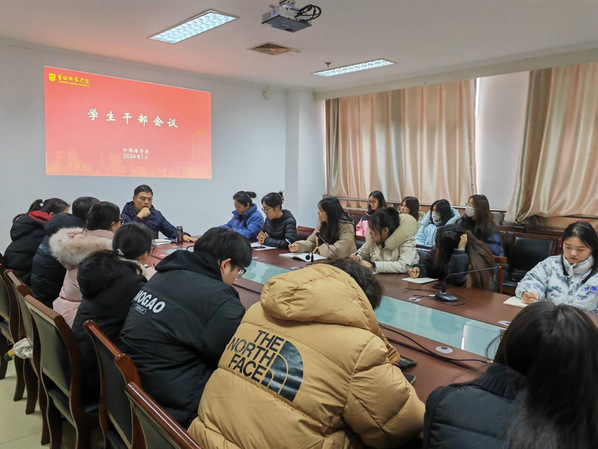 奋楫笃行迎新年,臻于至善启新篇。为进一步提高我院学生干部的综合素质和业务能力,强化学生干部服务意识、团队合作意识和凝聚力,扎实推进我院学生管理工作,1月3日上午,william英国官网党委副书记宋传盛在主楼13楼东会议室召开了2024年度第一次学生干部例会,外院主要学生干部参加本次会议。