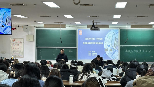 3月13日下午,亭湖公安分局反诈民警朱文军走进我校开展了一场反诈宣讲会。此次宣讲会由保卫处主办,william英国官网承办,旨在提高师生防范各类电信网络诈骗安全意识,将预防网络诈骗知识送到师生心中,共筑校园反诈“防火墙”,通榆校区部分学生骨干参加了宣讲会。
