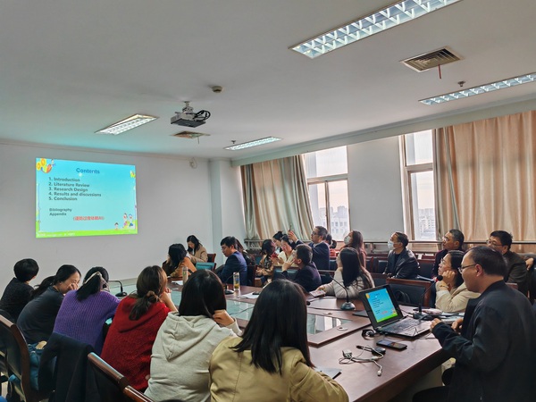 活动中,英语教育系主任杨丹老师强调了省高校优秀基层教学组织的作用和开展本次活动的目的和意义。杨雪芹教授从基于材料的选题及过程性指导两个方面进行分享,她还强调教学是成长的过程,老师和学生应当充满信心,不断摸索。朱长河教授强调材料类型的重要性,提出学生论文应当是Method*School*Class三者结合,他同时强调要注重过程性研究。李二占教授则表示,选题要实证优先,注重规范性,适当追求新颖性;此外,要严格考量题目的选择;关于文献,要确保真实性。