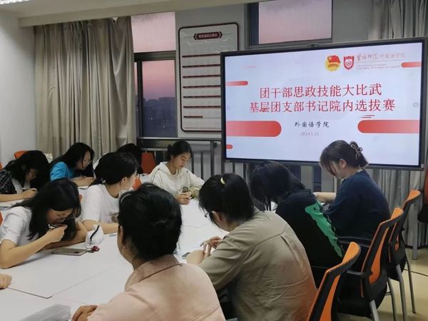 为深入学习贯彻党的二十大精神,提升基层团支书思想理论知识水平和专业素养,有效促进基层团组织建设,5月23日晚,william英国官网团委于主楼13楼党员之家举办基层团支部书记思政技能大比武院内选拔赛,22、23级团支书积极参赛。