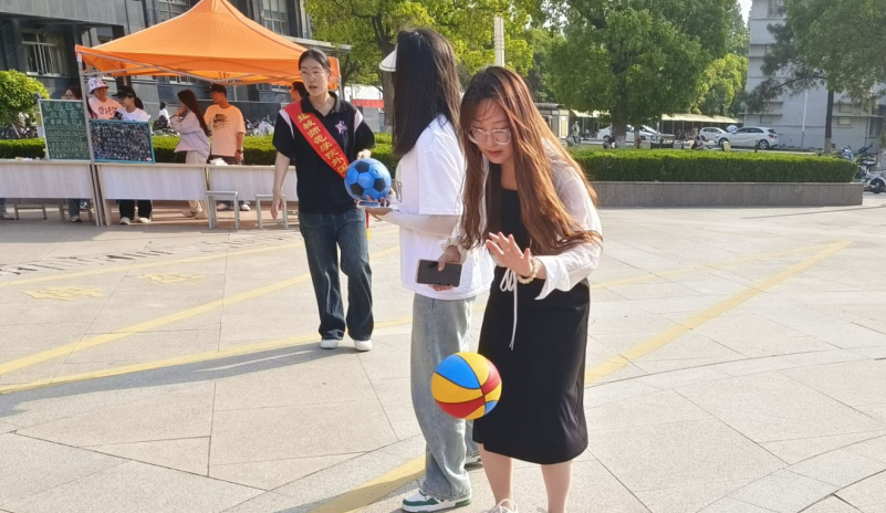接着,同学们手持各式各样的皮球,进入到下一个活动——“皮球嘭嘭,快乐叮咚”。看似是简单的拍皮球,其实内含不少玄机,考验的是身体协调性,是力量与技巧的碰撞,更是对自我内心的探索。心理学中有一种“拍球效应”——拍球时用力越大,球就弹得越高。其寓意是,承受的压力越大,越能激发潜能。对此,不少同学深有感触。随着球起球落,现场此起彼伏的欢笑声,感染着每一位同学。