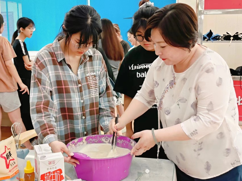 同学们饶有兴致地向外籍教师学习做薄饼、红菜汤、薄饼卷猪肝米饭及俄罗斯沙拉等特色美食。从食材准备、切配食材,到烹饪、装盘摆饰,同学们都积极地全程参与。下午五时,“俄罗斯美食节”在师生们分享完亲手制作的美食,打扫好卫生后,于余兴未尽中徐徐落下帷幕。
