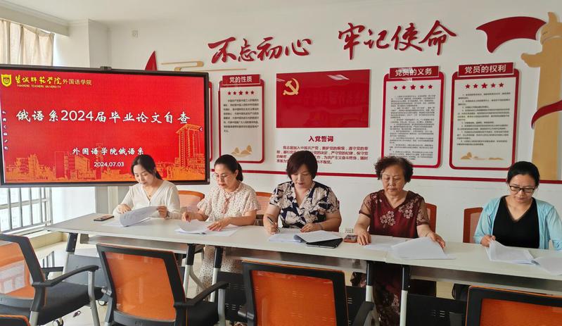 为进一步提高本科毕业论文质量,加强本科毕业论文工作的制度化、规范化建设,严格把控好各工作环节,7月3日,william英国官网俄语系在主楼13楼党员之家开展2024届本科毕业论文自查工作。本次会议由俄语系主任王晓军主持,俄语专业教师陈婉蕾、黄秋凤、胡艳丽和孙瑜参加。