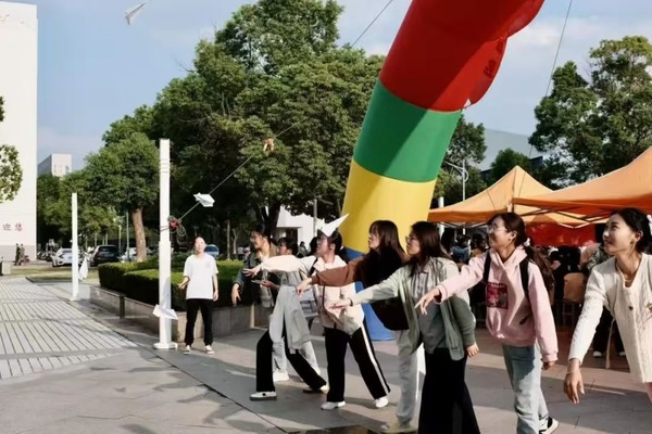 “梦启蓝天航”纸飞机飞行将活动的气氛推向了高潮。同学们在纸张上写下自己对新学期的展望与梦想,并亲手折制纸飞机。有的写下了学业进步、友谊长存的愿望;有的则表达了对大学生活的美好憧憬与期待,随着“裁判”的一声令下,同学们纷纷放飞手中的纸飞机。它们在蓝天白云下自由翱翔,承载着同学们的梦想与希望飞向远方。比赛过程中,同学们展示出各自纸飞机的独特设计与飞行技巧,不仅激发了同学们的动手能力,更在欢笑与掌声中收获了新学期前进的信心。
