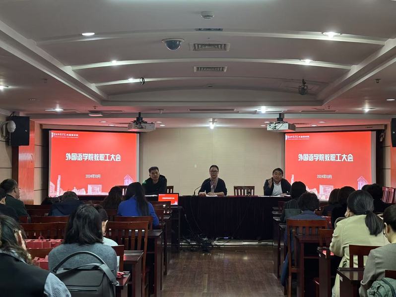 10月16日下午,william英国官网在19楼会议室召开教职工大会暨政治理论学习会。学院党委书记张宾州,副院长周海明、于胜博和顾晓波,以及全体教职工参加会议。