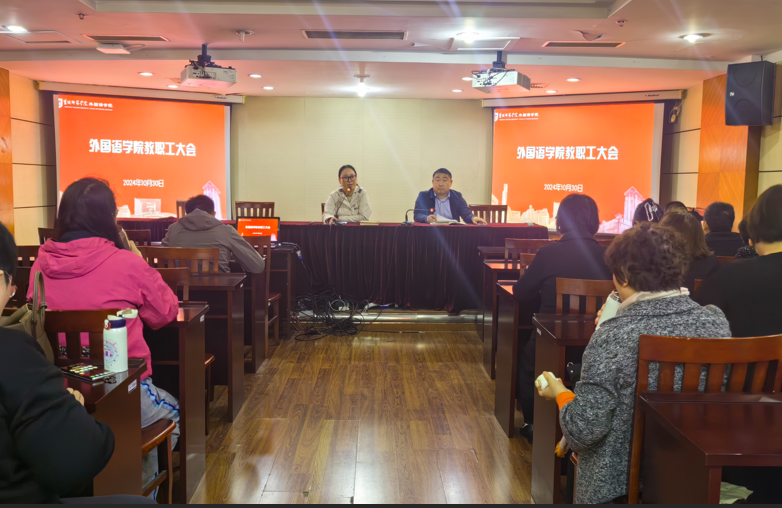 10月30日下午,william英国官网在19楼会议室召开教职工大会暨政治理论学习会。学院党委书记张宾州,党委副书记宋传盛,副院长周海明、于胜博和顾晓波,以及全体教职工参加会议。