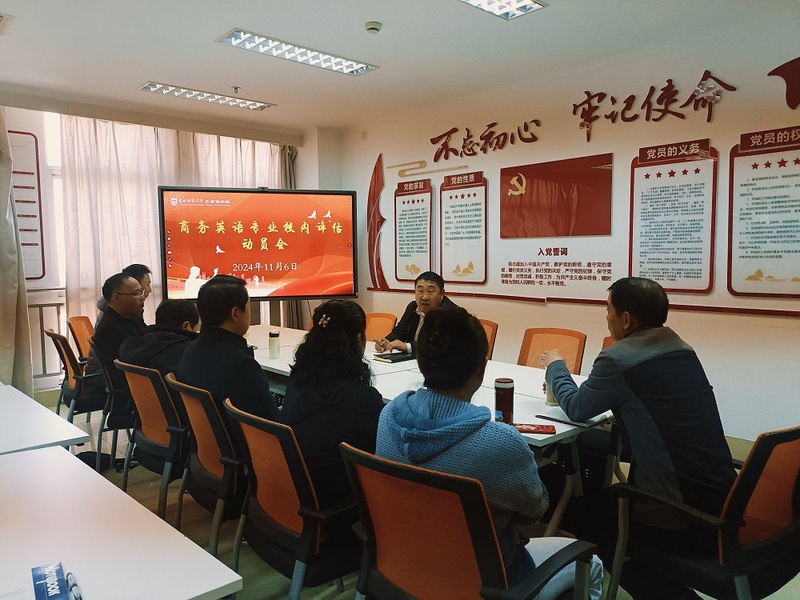 116下午william英国官网13楼党员之家召开商务英语专业校内评估动员会。副院长于胜博、商务英语系系主任苏军锋及全体教师参加会议。会议由苏军锋主持。