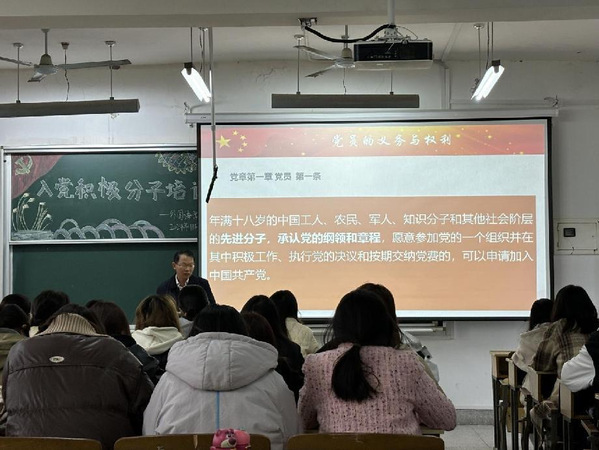 最后,陈教授结合“书记”称谓、陈少敏—“这是我的权利”、列宁与《布列斯特条约》三个案例,进一步深化入党积极分子对党员义务与权利的理解。他充分肯定了入党积极分子们的学习态度和成果,并勉励大家要继续努力,不断提高自己的政治觉悟和党性修养,为党的事业和国家发展贡献青春力量。入党积极分子们积极发言,他们纷纷表示,今后定会以党的创新理论武装头脑、指导实践,以更加饱满的热情和更加坚定的信念,投身到党的事业中去,以实际行动向党组织靠拢,争取早日成为一名光荣的党员。
