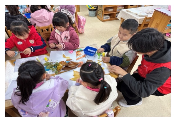 回到教室,志愿者与孩子们携手合作,将收集来的树叶巧妙构思、裁剪粘贴,再用彩笔勾勒细节,一幅幅栩栩如生的树叶画跃然纸上。从可爱的小动物到美丽的童话场景,在志愿者的耐心引导下,每一幅作品都凝聚着孩子们天马行空的想象和纯真的童趣。