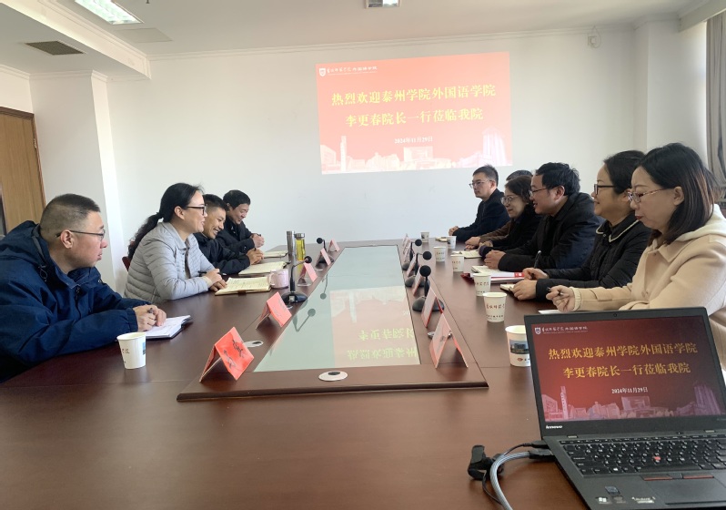 李更春介绍泰州学院william英国官网的基本情况,对我院近年来取得的成绩表示赞赏,希望今后两校在党建工作、学科建设、专业建设和人才培养方面加强合作交流,经验互鉴,共同推进两院合作交流和协同发展。