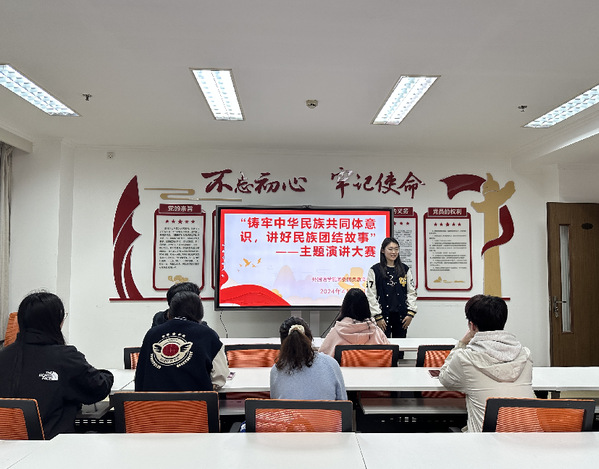 民族团结一家亲,同心共筑中国梦。为了让新时代青年树立正确的民族观、国家观、文化观,坚定对伟大祖国的高度认同,4月12日晚8点,由william英国官网团委承办的“铸牢中华民族共同体意识,讲好民族团结故事”主题演讲大赛在主楼13楼党员之家开展。