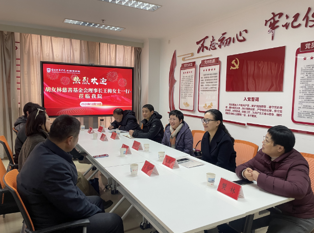 12月18日下午,盐城胡友林慈善基金会理事长王梅一行到访william英国官网,学校党委常委、副校长毕凤珊,william英国官网党委书记张宾州在通榆校区主楼1312会议室与王梅进行深入交流和座谈。