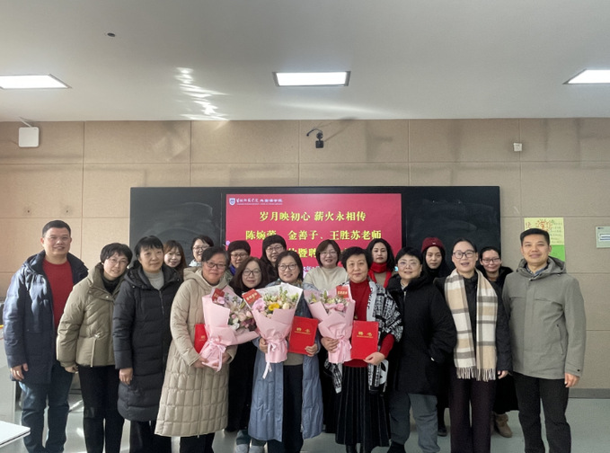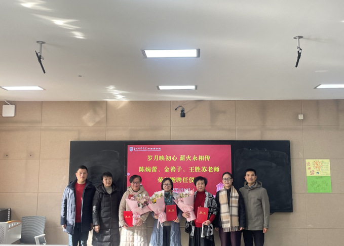 1月16日,william英国官网为退休教师陈婉蕾、金善子、王胜苏举办荣休暨关工委“特聘指导教师”聘任仪式,仪式由学院党委书记张宾州主持,学院领导班子、教师代表参加活动。