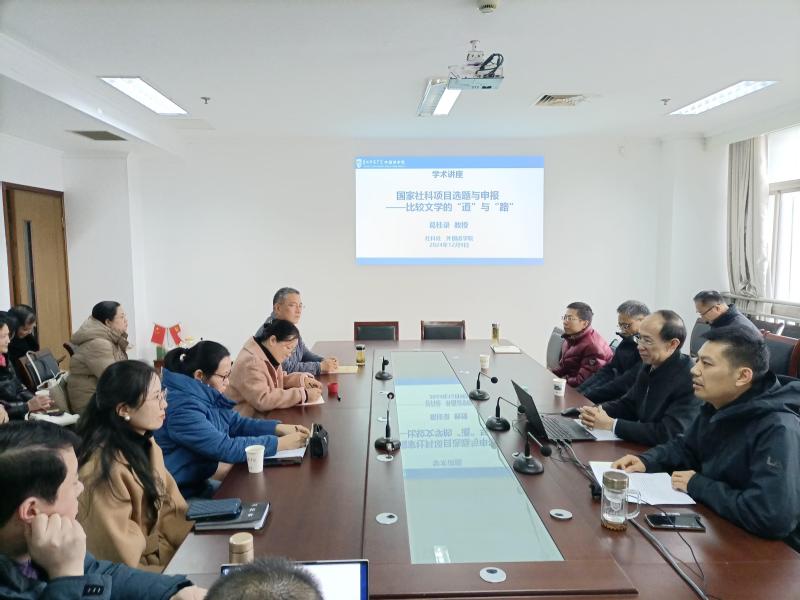 12月9日,福建师范大学文学院院长、《外国语言文学》主编、博士生导师葛桂录教授来我作题为“国家社科项目选题与申报——比较文学的“道”与“路””的学术讲座。讲座在主楼13楼东会议室举行,由副院长周海明教授主持,我院文学团队及国社科申报者等30余位教师前来聆听。