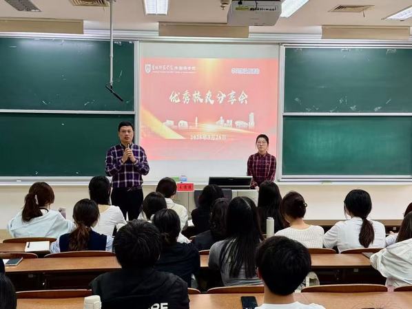 宋传盛首先对王清清校友的到来表示热烈欢迎和衷心感谢,他强调优秀校友既是学院在读学子的榜样,也是学院的宝贵财富,希望同学们要积极与学姐交流学习,汲取智慧,明确自身发展方向。