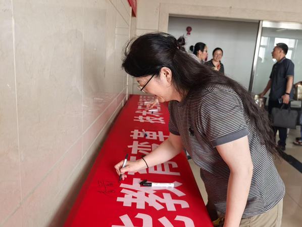为进一步深化理解,活动特邀学院赵景昆老师作《技术赋能外语教学与学科竞赛:挑战与机遇》主题讲座。他结合自身实践,分析了外语教学和学科竞赛在数字化转型中的机遇与挑战,重点探讨了智能技术在外语教学中的应用路径,包括构建智慧语言学习环境、实现个性化精准教学、开发智能化评价工具等。讲座既有理论高度,又有实践案例支撑,为党员教师提供了宝贵的方法指导。此外,全体党员举行了庄重的集体承诺仪式。在“数字赋能教育变革 技术绘就强国建设”的横幅前,党员教师们郑重签名,表达了对教育数字化战略的坚定拥护和投身实践的决心。大家纷纷表示,将积极学习新技术,提升外语人才培养质量,为教育现代化和科技强国建设贡献力量。