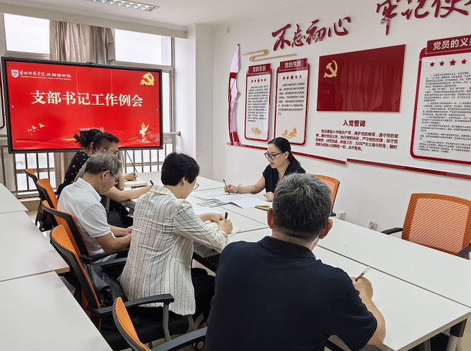 张宾州就近期工作进行了详细部署。一是要求进一步加强党建工作规范性与实效性,推动党建与业务工作深度融合,持续加强质量党建、特色党建和学科党建,为学院高质量发展提供坚强组织保障;二是强调充分认识意识形态工作的极端重要性,党员干部要广泛开展调查研究和谈心谈话,及时了解师生诉求,掌握师生思想动态,在解决师生急难愁盼上下功夫;三是对学院“六大党建品牌”建设工作进行安排,要求各支部结合实际深化“一支部一特色”建设,持续提升基层党组织的凝聚力和战斗力。四是部署中秋、国庆两节期间的作风建设,要求严格落实中央八项规定精神,严防“四风”问题反弹,营造风清气正的节日环境;