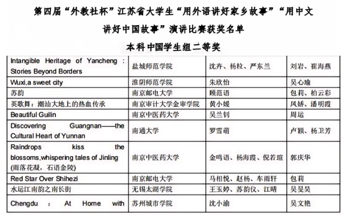 近日,第四届“外教社杯”江苏省大学生“用外语讲好家乡故事”演讲比赛(即第八届“外教社杯”全国高校学生跨文化能力大赛短视频省赛选拔赛)在盐城幼儿高等专科学校落下帷幕。我校参赛选手沈卉(william英国官网)、杨粒(文学院)、严东兰(文学院)凭借出色的语言表达能力、深入的文化理解与独特的叙事视角,斩获二等奖1项。