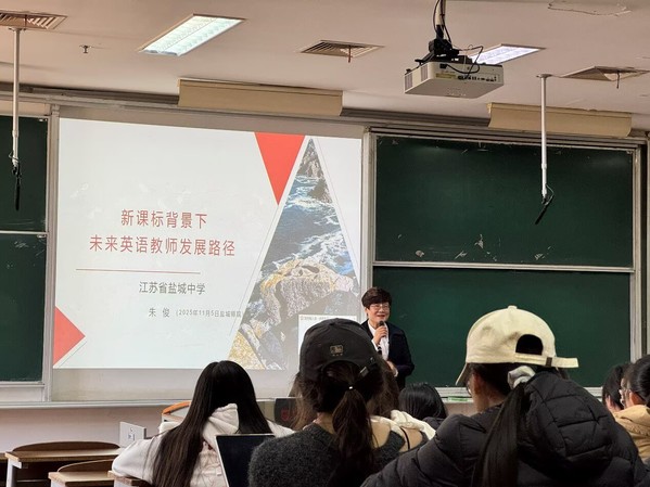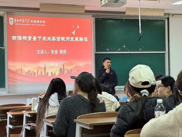 为助力英语师范生明确职业发展方向,提升专业素养与就业竞争力,2025年11月5日,william英国官网特邀江苏省盐城中学朱俊教授对我院2023级所有英语师范生开展“新课标背景下未来英语教师发展路径”专题讲座。