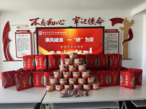 会上,院长周海明围绕备考心态展开疏导,建议同学们放下焦虑、轻装上阵,以平和从容的心态迎接最后阶段的复习。他勉励大家“持之以恒、久久为功”,凭借日积月累的扎实功底迎接人生的重要挑战。党委书记张宾州向考研学子表达了殷切期望与暖心关怀。她鼓励大家在冲刺阶段锚定目标、坚定信心,以稳健扎实的节奏推进复习计划;同时提醒同学们注意天气变化,做好防寒保暖,保持良好身心状态,并送上真挚的祝福。为助力学子从容备考,学院还精心准备了满载温情的“考研暖心大礼包”,每一件物资都凝聚着学院对同学们的深情厚谊与美好祝愿。