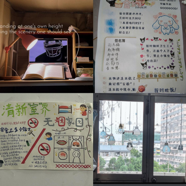 本次大赛围绕“创意、整洁、温馨、和谐”主题展开,鼓励各宿舍结合自身兴趣与审美,对宿舍进行创意布置与改造:有的宿舍以手绘玻璃装点空间,将校园四季景致映于通透之中;有的宿舍通过旧物改造,打造出生机盎然的“绿植角”,为生活增添一抹清新;还有的宿舍设置了“宿舍公约墙”“时光照片角”,以温暖细节记录共同成长的点点滴滴。