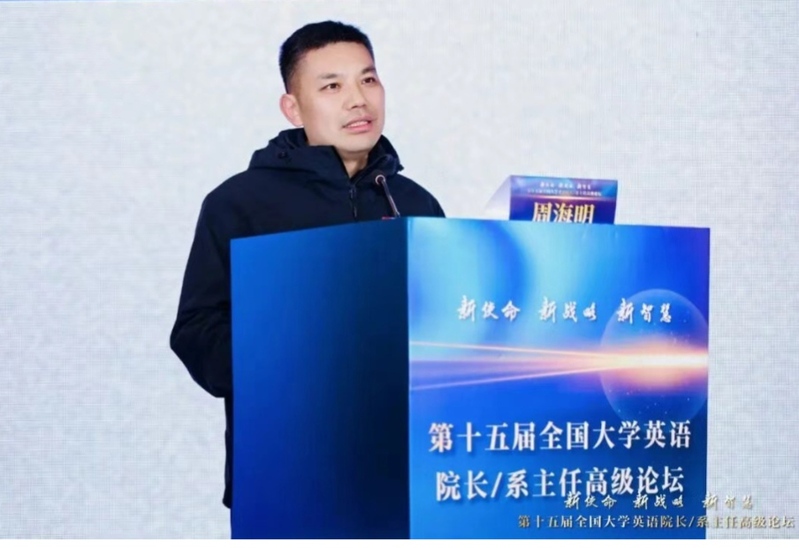 我院周海明院长应邀出席论坛,并在平行论坛发表题为“从语言能力到传播效能——大学英语课程国际传播转型探讨”的报告。报告中,周海明深入剖析了新时代大学英语教育的转型路径,提出大学英语教学应突破传统语言技能训练局限,将培养学生跨文化交际能力与国际传播能力作为核心目标,实现从单一语言教学到以“传播效能”为导向的综合素养培育转变。