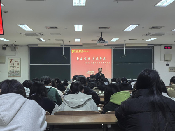 为激发学生考研积极性,帮助大家科学认清考研形势、明确奋斗方向,进一步营造浓厚的考研学习氛围,4月13日,william英国官网在主楼B303举办以“聚力考研,共筑梦想”为主题的考研动员大会。学院党委副书记宋传盛、全体辅导员及2023级学生共同参会。